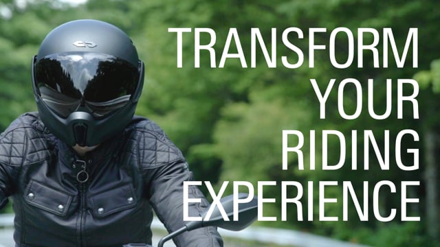 A motorcycle helmet with a heads-up display. Together with an app, it lets you see navigation data, the view from its rear camera and more. It also isolates sounds and has a walkie talkie function. Its front is elongated to provide more space and make it easier to breathe.